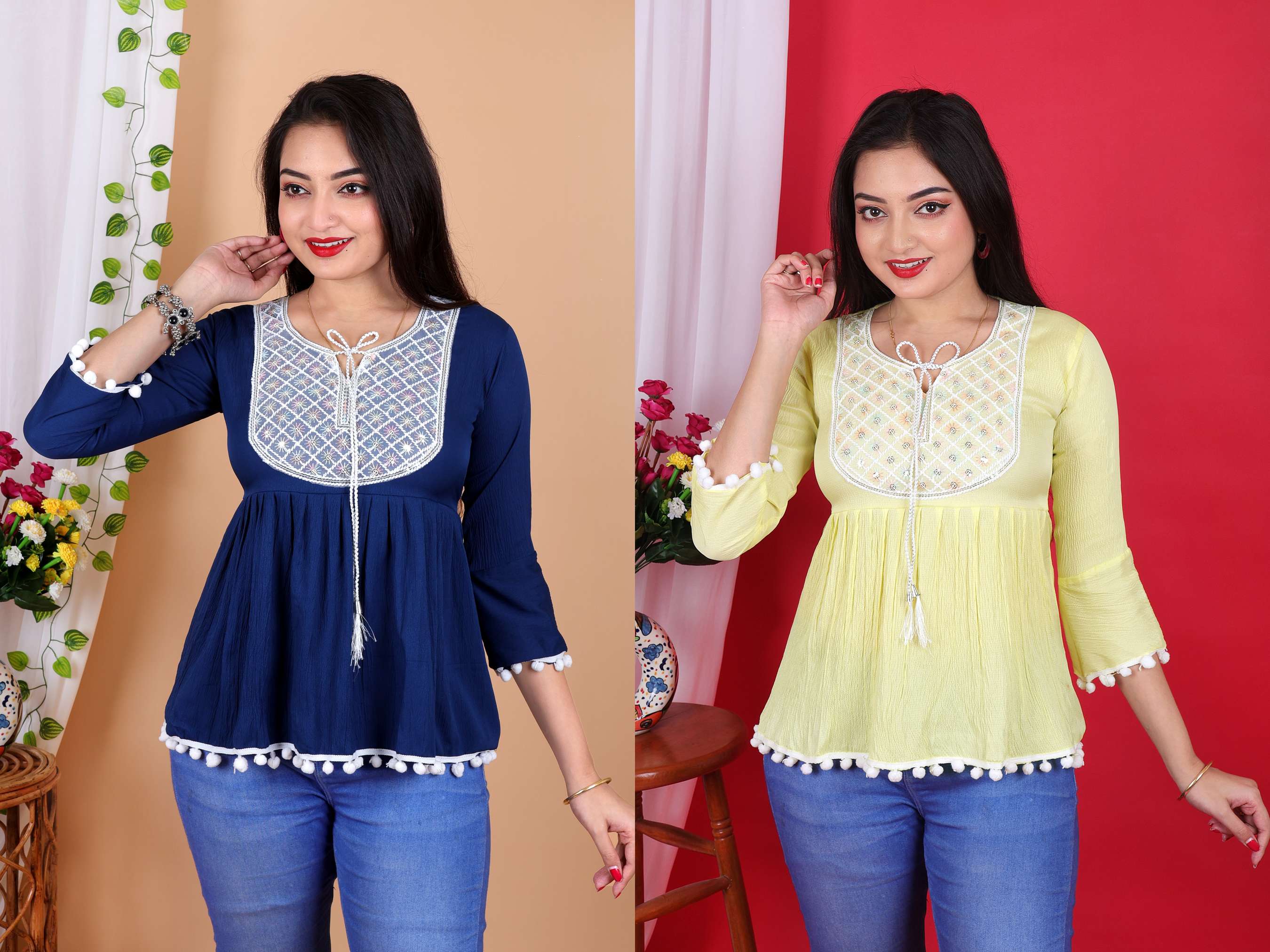 Explore Shopsy’s latest collection of tops for girls. Start browsing to find the best deals online. Choose tops that make you feel cosy and comfortable. Various materials, including cotton, crepe, linen, georgette, viscose rayon, and silk, comprise different tops. Each of these materials has a distinct look and feel. Opt for fabrics that match your comfort requirements and aesthetic preferences. When shopping for tops for girls, many of you may want a sophisticated look instead of an ultra-simple one. You can find blazer-style tops on Shopsy. These are also available in bold or feminine designs. If you prefer comfort instead, you can look for crop tops or ones with noodle straps. They help with effortless styling during humid weather. You can find tops with floral motifs, delicate patterns, or embroidery. Because of their versatile nature, they can be styled with different kinds of bottomwear. Pair your favourite tops with jeans for a trendy look. For a more relaxed, flowing look, you can buy skirts for girls and match them with your preferred tops. Such apparel has long been popular all over the world. Whatever your final choice, you can mix and match varied tops with different outfits and accessories to express your personal style.