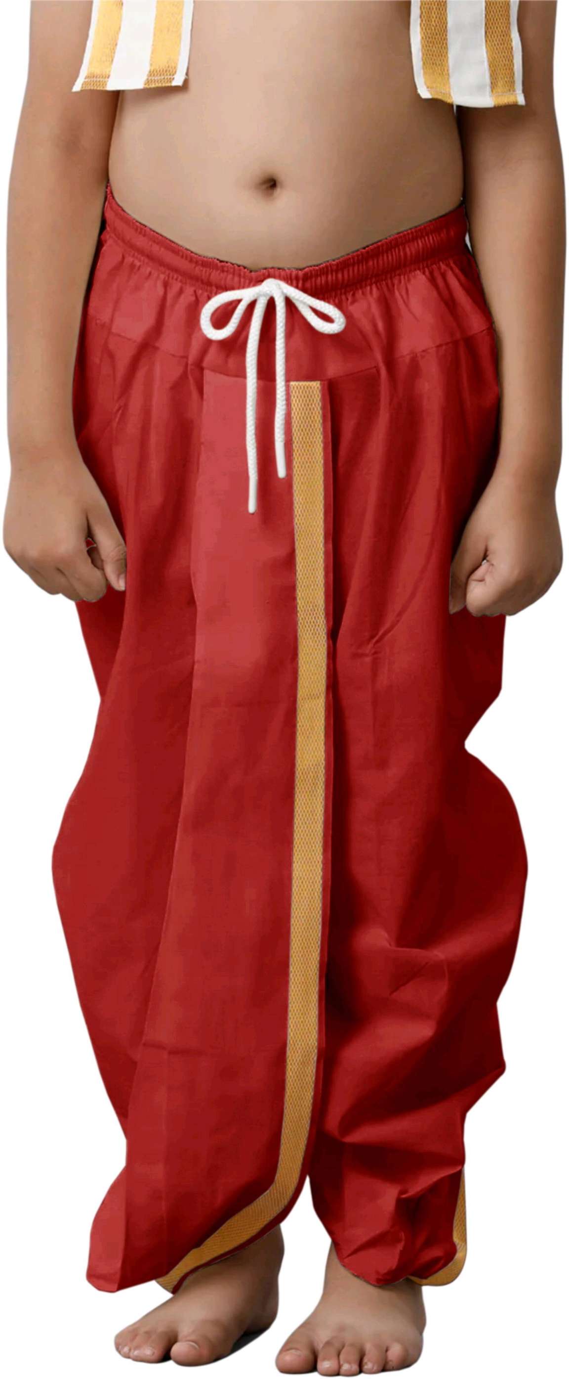 Kids' dhotis are traditional Indian garments commonly worn by young boys for special events, ceremonies, or cultural celebrations. Dhotis can be recognised by their loose yet draped style. Fabric is wrapped loosely around the waist and legs, similar to how skirts work. Dhotis are often combined with matching or contrasting shirts. Shopsy has a wide range of selections that are carefully handcrafted from high-grade fabric for optimal durability. The collection features both traditional cotton dhotis, which are crafted with lightweight yet comfortable, breathable cotton fabric, and luxurious silk dhotis, which add an air of sophistication to any festive gathering, ideal for weddings, religious ceremonies, and formal events of all sorts. For those in search of stylish yet unique kids' clothing online, Shopsy's designer dhotis offer contemporary versions of traditional designs. Ready-to-Wear Dhoti Sets are convenient for upcoming festivities. They offer pre-stitched dhotis paired with matching kurta or shirt sets, which are ideal for busy parents or children unfamiliar with traditional dhoti draping. These sets make life simpler! Shopsy has an expansive collection of kids' dhotis designed for every event and style preference imaginable - shop our collection now to dress your little ones with traditional elegance and comfort!