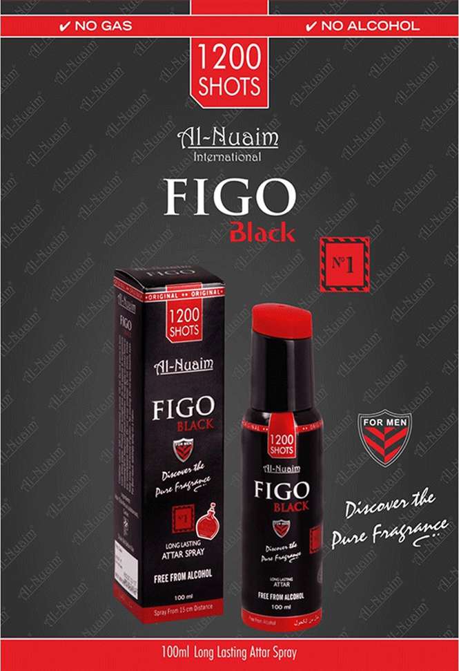 Al Nuaim FIGO BLACK LONG LASTING PERFUME SPRAY FREE FROM ALCOHOL Floral Attar (Floral)