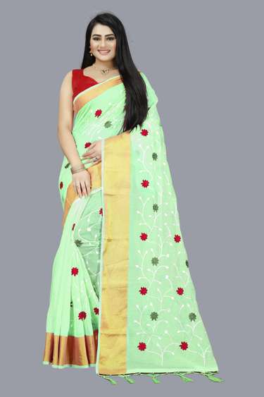 Showcase craftsmanship with an addition of timeless embroidered sarees to your collection. These sarees keep with tradition as they highlight the skilful craftsmanship and heritage of our country. The intricate work adds an elegant touch and can be worn for various occasions. On Shopsy, you will find these women's sarees with different embroidery styles to match with the diverse cultures. Choose from these styles, such as zari work, which includes delicate and intricate embroidery with gold and silver threads for a lavish look, or choose to go with a glamorous, shiny vibe with embellishments and sequins work that is perfect for a nighttime event. These various embroidery styles are available in several fabrics. A silk saree has an aura of its own. Lightweight sarees such as georgette and crepe are easy to drape and versatile to style. For breathability, a cotton saree is a great choice as it is soft on the skin and can be worn during changing weather, too. Choose to go with a neutral colour for all occasions, or choose a vibrant pop of colour to match your personality. Shop the collection of embroidered sarees on Shopsy to expand your wardrobe.