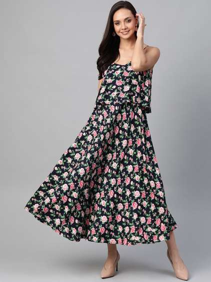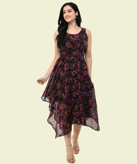 Floral midi dresses can be considered timeless fashion necessities due to their flattering finish and feminine look. Usually featuring an ankle-length design and having delicate flower motifs or bold floral prints that add charm, these outfits can be suitable for numerous events in different seasons. Floral midi dresses offer adequate versatility. Their versatile nature enables you to easily transition between casual outings and more formal affairs with just a switch of adornments - sandals or sneakers for casual daytime looks while adding heels or elegant jewellery set for women to elevate your looks. Fitted or flowing styles with different features like ruffles, tie waists, or off-the-shoulder necklines ensure that you can easily find options that can meet your needs! Available in a range of colours, fits, floral prints, designs, and more, you can find a range of options that can help you stand apart from the crowd. Shop stunning flare dresses to bodycon dresses, or strappy long dresses, stylish front slit outfits, dresses with short sleeves to long sleeves, and more. Shopsy can be your one-stop solution when it comes to availing yourself of floral midi dresses. So, go through the various options with a few clicks and choose your ideal ones from the comfort of your home.